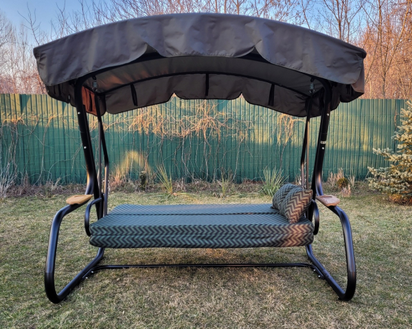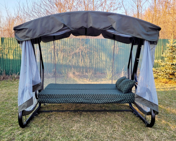 Пориньте в атмосферу безтурботності з садовими гойдалками Вікторія 044 від GreenGard - модель, що не лише прикрасить територію заміського будинку чи котеджу, а й стане вашим особистим острівцем релаксу. Вікторія 044 GreenGard - справжня знахідка для великої родини: на міцній конструкції з легкістю розмістяться четверо дорослих людей, адже вона витримує навантаження до 400 кг. Модель-трансформер, продумана до дрібниць: відрегулюйте нахил спинки або повністю розкладіть сидіння, перетворюючи гойдалку на затишне літнє ліжко. А щоб відпочинок був ще більш спокійним, конструкція фіксується від розгойдування. М'які подушки виконані з приємного на дотик меблевого велюру та наповнені гіпоалергенним поролоном завтовшки 80 мм. Верх і низ подушок зшиті між собою - вони не сповзають, не скручуються навіть за активного використання. У комплект входить цілісний матрац, декоративні подушки та дерев'яні полиці для напоїв, книжок або смартфона - все, що потрібно для повного комфорту. Тент із водонепроникної тканини Oxford захистить від сонця та дощу, а москітна сітка по периметру захистить від надокучливих комах. Її можна акуратно зібрати під козирком або повністю зняти за бажанням. GreenGard Вікторія 044 - простір, де оживають затишні літні вечори, неспішні розмови та хвилини тиші наодинці з природою.