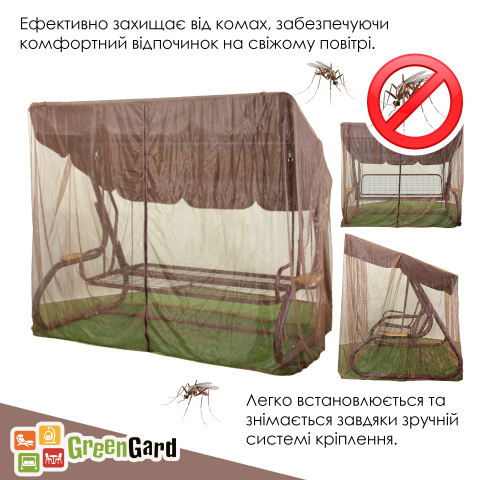 каркас гойдалки, комплект подушок, тент, антимоскітна сітка, кріплення, інструкція по збірці |