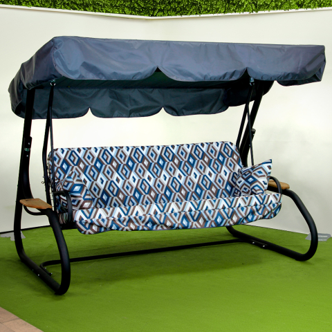 каркас - чорний, чохли подушок - синій з ромбоподібним візерунком, тент - сірий |