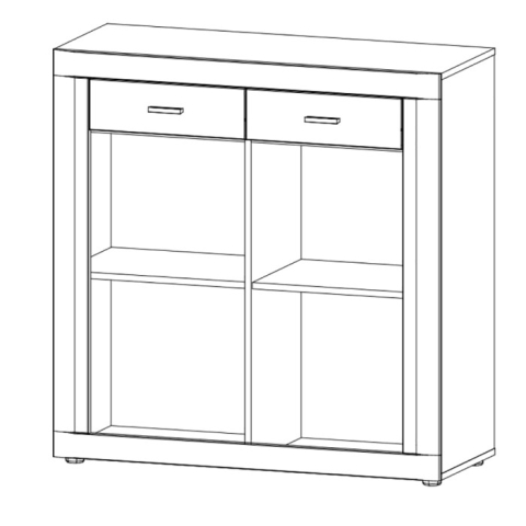 комод містить дві висувні шухляди і два закритих відділення з полицею всередині кожного |