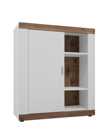 Стильний і практичний комод 1Д Санторіні Сокме збереже порядок у вашому домі і стане чудовим доповненням вітальні. Комод містить одне закрите відділення з полицею всередині та дві відкриті полиці. Колекція привертає увагу: мінімалістичним дизайном; елегантним поєднанням білого з верхніми і нижніми краями, що імітують натуральне дерево в кольорі «дуб вікінг»; строгим фрезеруванням фасадів; довгастими ручками сріблястого кольору; стійкими ніжками; фірмовими комплектуючими. Приголомшливі меблі Санторіні Сокме стануть справжньою окрасою як сучасного, так і традиційного інтер'єру.