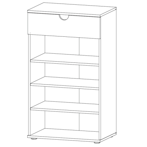 комод містить одну висувну шухляду і одне закрите відділення з полицями всередині |