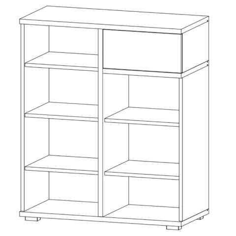 комод містить одну висувну шухляду і два закритих відділення з полицями всередині |