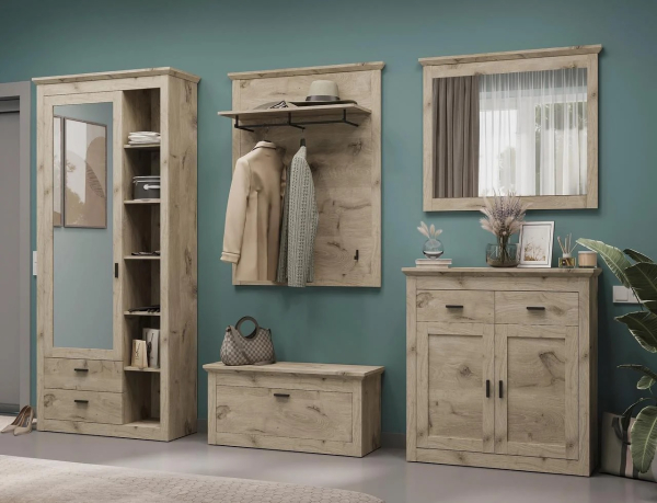 Комод 2Д2Ш Санремо Сокме - втілення затишку, природної гармонії та легкого шарму заміського стилю. Комод містить дві висувні шухляди та одне закрите відділення з полицями всередині, створюючи зручний простір для зберігання, де кожна деталь продумана для комфорту та затишку на довгі роки. Модель виділяється спокійним дизайном і продуманим виконанням: фактура натурального дуба створює відчуття тепла, прямі лінії - порядок і лаконічність, декоративні карнизи надають композиції виразність і завершеність, контрастні чорні ручки додають сучасну ноту, міцна основа забезпечує максимальну стійкість, а якісні комплектуючі - гарантують плавність і легкість використання. З Санремо Сокме передпокій перетворюється на затишний, світлий простір, куди приємно повертатися - де кожен день вас зустрічають тепло і гармонія.