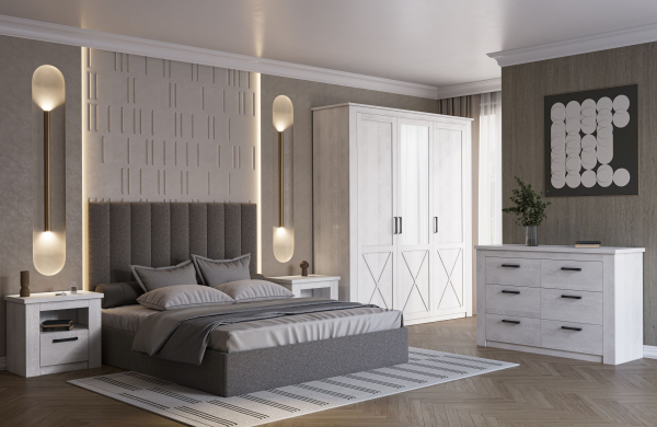 Привабливий з незвичайним дизайном комод 2Д3Ш Ешлі, створений українською фабрикою Світ Меблів, стане стильним акцентом у вашій вітальні або спальні, забезпечуючи комфорт і естетичну насолоду. Комод складається з трьох функціональних висувних шухляд і двох закритих відділень, які забезпечують легкий доступ до речей, що зберігаються, і дають змогу сортувати речі відповідно до ваших потреб. Виконаний у світлому відтінку «сосна водевіль», комод візуально збільшує простір, надаючи кімнаті світло і затишок. Корпус і фасади виготовлені з міцного ламінованого ДСП з вишуканими МДФ-накладками, які додають виразності та витонченості. Декоративні елементи, такі як перехресні планки на фасадах та елегантні різьблені карнизи, підкреслюють стиль і характер моделі, а лаконічні металеві ручки гармонійно завершують образ. Меблі Ешлі Світ Меблів - це можливість створити затишний куточок, де кожна деталь буде радувати око. Дозвольте собі інтер'єр, який надихає!
