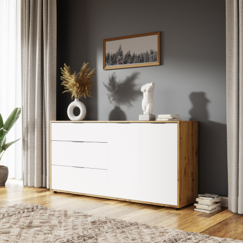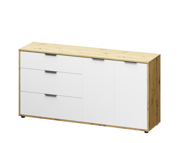 Елегантний та сучасний комод 2Д3Ш Нітро білий Сокме дозволить створити оригінальний та гарний простір у передпокої. Комод містить три висувні шухляди і одне закрите відділення з поличками всередині. Колекція привертає увагу: лаконічним стриманим стилем; чіткими лініями; поєднанням корпусу дуб вотан з білими фасадами; оригінальними ручками чорного кольору, інтегрованими в край фасаду; стійкими ніжками; фірмовими комплектуючими. Меблі Нітро біла Сокме - практичне рішення для сучасного інтер'єру, яке не тільки прикрасить простір, але і забезпечить додаткове місце для зберігання.