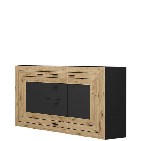 Елегантний комод 2Д4Ш Джейкоб антрацит Сокме, в якому виразний дизайн і гармонія контрастів втілюються в сучасному образі затишку, стилю і бездоганного смаку. Комод містить чотири висувні ящики і два закритих відділення з поличками всередині для зручного зберігання і раціональної організації простору. Родзинкою є витонченість і елегантність; вишуканий баланс холодної виразної строгості з природною натуральністю дерева; прямі лінії і строгі геометричні форми; акуратні тонкі ручки, чорного кольору; міцна основа з невеликими ніжками, що сприяє максимальній стійкості; високоякісна фурнітура. Джейкоб Сокме – меблі з характером, в яких продуманий кожен штрих, створюючи простір, де сучасний затишок поєднується з бездоганним смаком і кожна деталь відображає витончене почуття стилю.