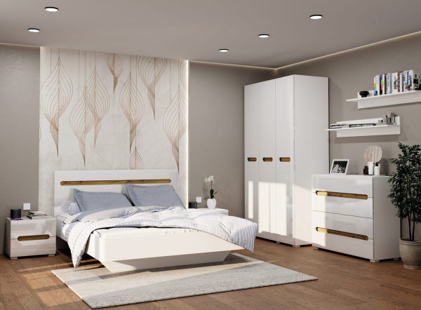 Комод Б'янко Світ Меблів, наповнений сяйвом витонченого стилю, поєднує сучасну естетику, функціональність і вишуканість у кожній деталі, створюючи в будинку атмосферу натхнення, затишку і візуальної гармонії. Комод включає чотири висувні шухляди, забезпечуючи зручне зберігання і підтримуючи охайний зовнішній вигляд простору. Колекція привертає увагу продуманим дизайном, лаконічними формами і чистими лініями, витонченими фасадами, плавними закругленими краями і відсутністю звичних ручок, роль яких виконують акуратні фрезеровані виїмки з контрастними двосторонніми вставками, де одна сторона виконана в глибокому чорному кольорі, а інша в благородному відтінку дуб аппалачі, що при збірці дозволяє вибрати відповідний варіант оформлення, підкресливши характер інтер'єру і додавши йому індивідуальності, виразності і особливого шарму, стійкі квадратні ніжки надають конструкції візуальну солідність і сучасний характер, а якісна фурнітура завершує композицію, об'єднуючи естетику і комфорт в єдиному гармонійному образі. Б'янко Світ Меблів - мистецтво жити красиво, поєднуючи естетику, комфорт і сучасні технології, створюючи простір, в якому вам буде приємно перебувати кожен день!