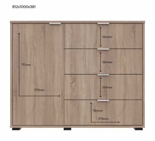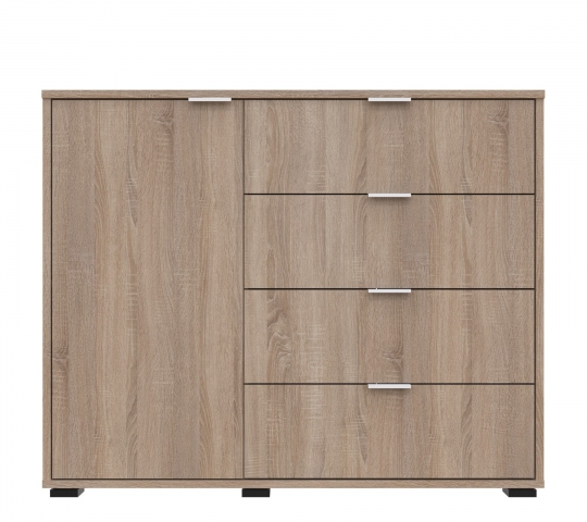 Комод GС1 дуб сонома Doros стане корисним функціональним предметом меблів, що дозволяє розмістити необхідні речі. Комод в своїй конструкції має чотири висувні шухляди та одне закрите відділення. Комод – стильний та функціональний предмет меблів, для створення унікального інтер'єру у кімнаті.
