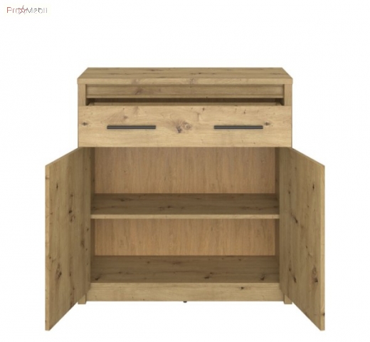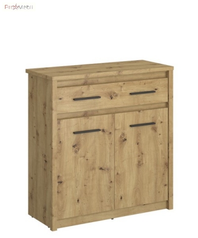 Комод KOM 2D1S Айсон ВМВ елегантний в скандинавському стилі призначено для облаштування вишуканої вітальні, їдальні, спальні, дитячої кімнати, передпокою та робочого кабінету. Комод має одну висувну шухляду та одне закрите відділення з поличкою всередині, де чудово можна зберігати різні предмети чи речі. Комод привертає увагу привабливим відтінком «дуб артізан» з чіткою деревною текстурою; елегантним сучасним стилем; простотою геометричних форм; паралельними горизонтальними заглибленнями, що візуально розділяють фасади; контрастними довгастими пластиковими ручками чорного кольору; фірмовими комплектуючими. Ayson VMV універсальні меблі, які впишуться практично в будь-який інтер'єр, створивши надзвичайно естетичне та романтичне оточення.