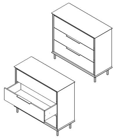 комод містить три висувні шухляди |