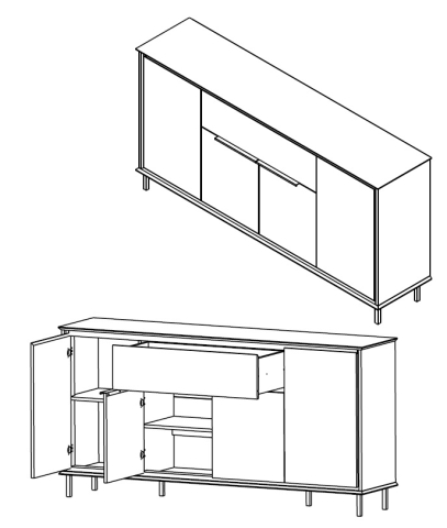 комод містить одну висувну шухляду і три закритих відділення з полицею всередині кожного |