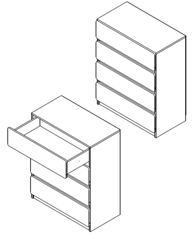 комод містить чотири висувні шухляди |