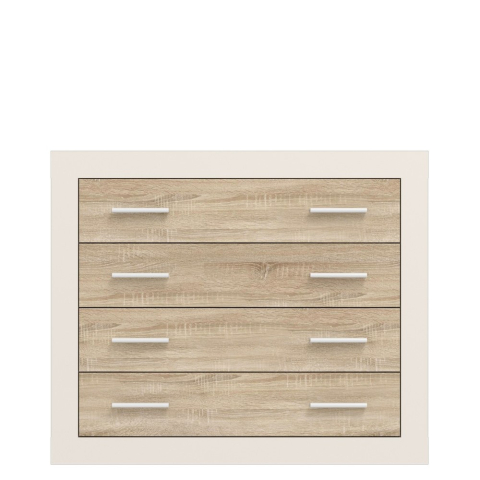 Надзвичайно привабливий і в той же час сучасний комод KOM4S Сара Gerbor, який підкорить серце не тільки своїм ексклюзивним і естетично привабливим зовнішнім виглядом, але і порадує своїми функціональними та ергономічними можливостями, для облаштування спальні та вітальні. Комод містить чотири висувні шухляди. Комод привертає увагу: елегантністю; чіткими лініями та строгою геометрією форм; контрастним поєднанням, де корпус, оповитий м'яким і витонченим відтінком «кашемір», ідеально контрастує з фасадами, оздобленими природною текстурою «дуб сонома; масивним корпусом; подовженими плоскими ручками; міцною підставою, що сприяє максимальній стійкості; фірмовими комплектуючими. Вишукана колекція Сара Gerbor - завжди виглядатиме елегантно, не залежно від сучасних трендів, створюючи в будинку комфортне та затишне оточення.