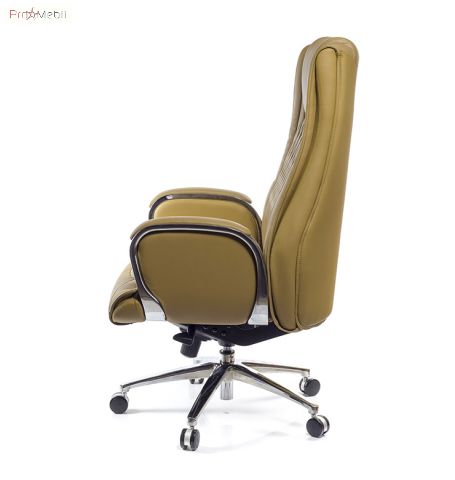 - Подлокотники высокие, обтянуты кожей - надёжная и комфортная опора для Ваших рук. Элегантный изгиб подлокотников, дополненный мягкими накладками, не только прекрасно дополняют внешнюю красоту кресла, но и подарят Вашим рукам чувство максимального комфорта. Дугообразные металлические вставки в подлокотниках красиво обрамляют и подчёркивают их форму, гармонично сочетаются с металлической крестовиной.