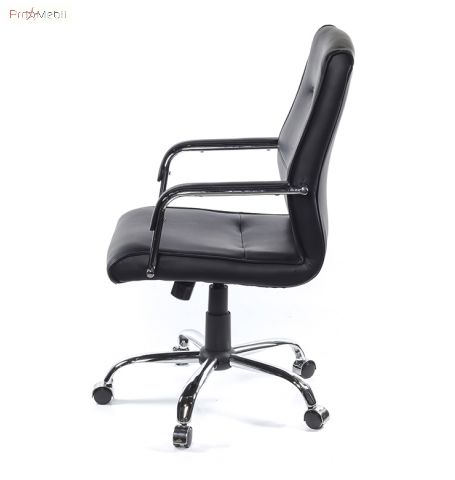- Металлические подлокотники имеют мягкие накладки из экокожи. Хромированное покрытие металлических деталей кресла достаточно стойкое, не царапается и надолго сохраняет привлекательный внешний вид. Высота подлокотников позволяет пододвинуть кресло вплотную к рабочему столу стандартной высоты и освободить окружающее пространство рядом.