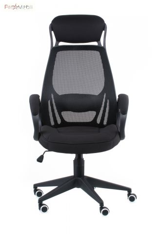 покриття: спинка - текстилайн (сітка), сидіння та підголовник - меблева тканина - чорного кольору |