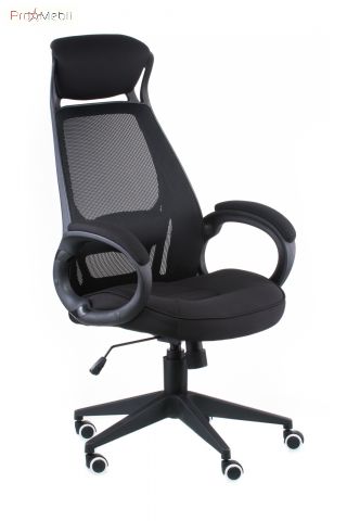 крісло чорного кольору зі спинкою сіткою та підголовником |