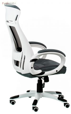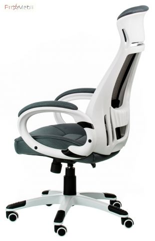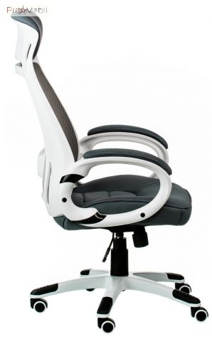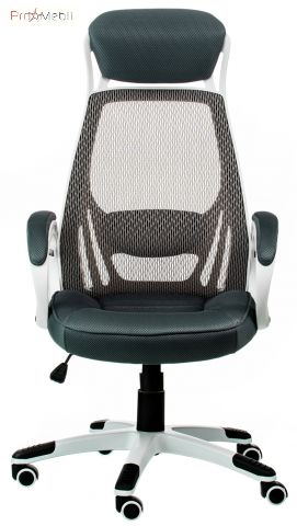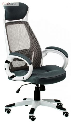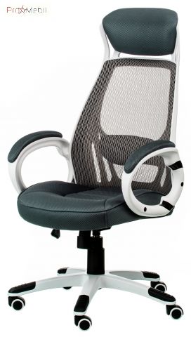 крісло сіро-білого кольору зі спинкою сіткою та підголовником |