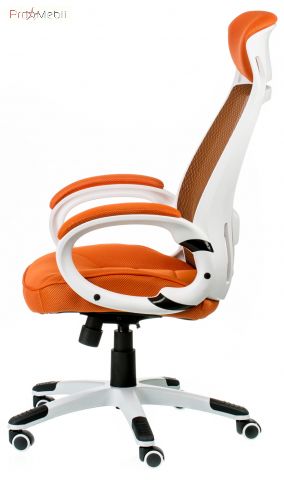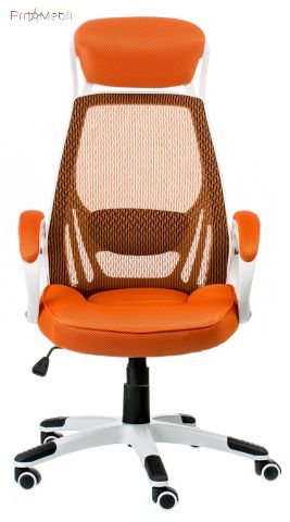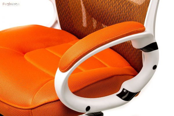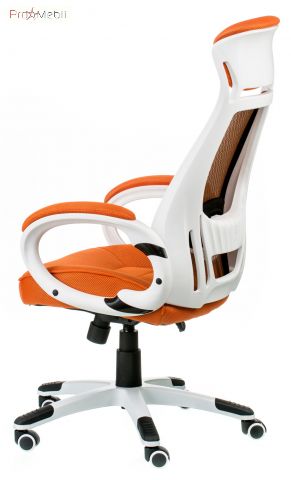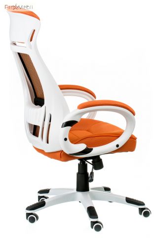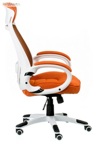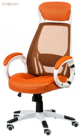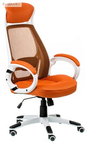 крісло помаранчево-білого кольору зі спинкою сіткою та підголовником |