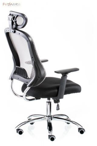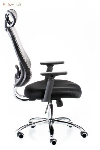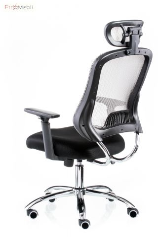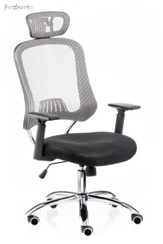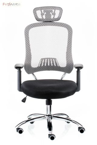 крісло сіро-чорного кольору зі спинкою та підголовником сіткою має анатомічно правильне сидіння, що забезпечує максимальний комфорт та турботу про здоров`я, тому що не відбувається передавлювання судин та застою крові (у внутрішніх органах) |