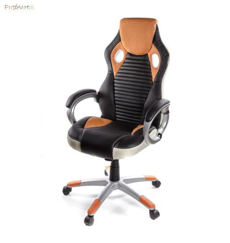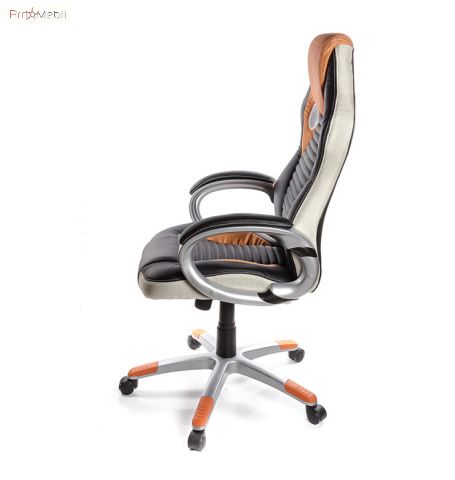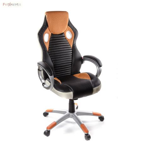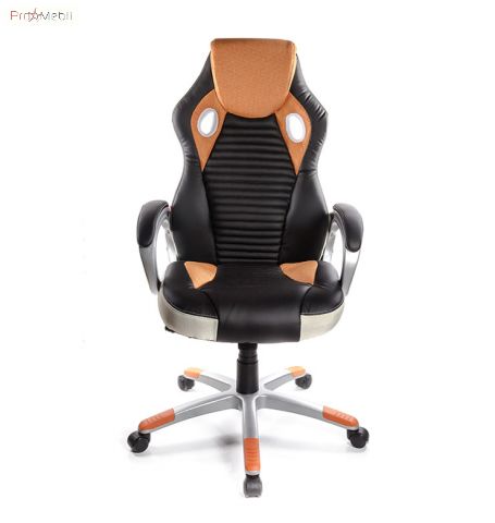 - Современный дизайн кресла дополнен удачным сочетанием обивочных материалов - ткань ярких цветов гармонично дополняет качественная экокожа черного цвета. Тканевые вставки помимо декоративной роли имеют и практичную функцию - они расположены в местах максимального соприкосновения с телом для еще более комфортной посадки.