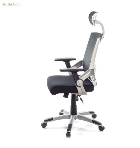 - Пластиковые подлокотники у данной модели - эксклюзивные. Они состоят из 2 частей разного цвета. Подвижная часть Т-образной формы из черного пластика имеет оригинальный дизайн крепления и может изменять угол наклона. Рабочая плоскость, на которую опираются руки, достаточно большая и имеет слегка шероховатую текстурированную поверхность для того, чтобы руки не соскальзывали во время работы.