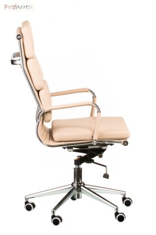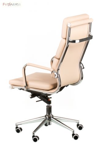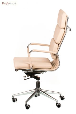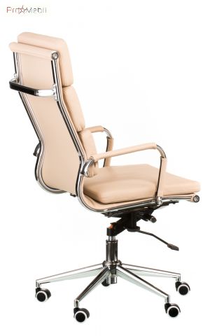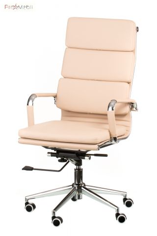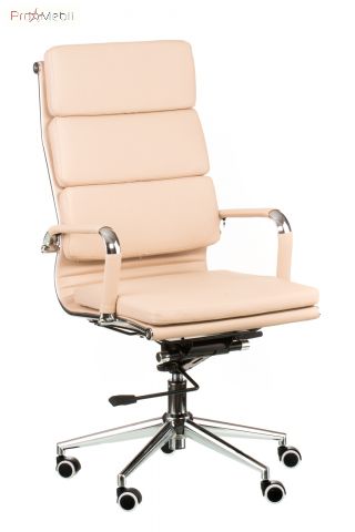 кресло руководителя с мягкой спинкой и сидением бежевого цвета имеет анатомическую посадку |