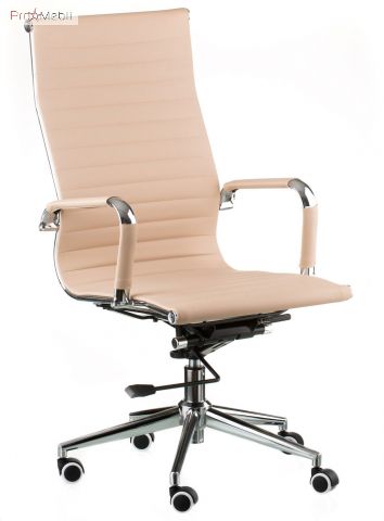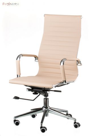 крісло керівника з твердою спинкою та сидінням бежевого кольору має анатомічну посадку |