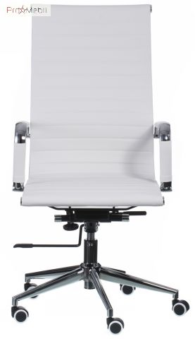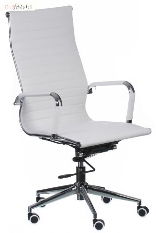 крісло керівника з твердою спинкою та сидінням білого кольору має анатомічну посадку |