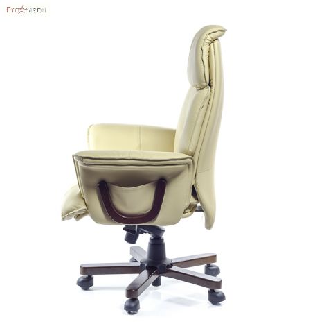 - Крестовина в данной модели комбинированная: металлический сварной каркас украшен красивыми накладками из натурального дерева. Все деревянные элементы тщательно обработаны и покрыты тонированным глянцевым противоударным лаком - кресло долгое время будет оставаться в безупречном состоянии и радовать вас. Металлическое основание крестовины, даже не взирая на солидные габариты, очень надёжное и устойчивое, а роликовые опоры позволяют креслу легко передвигается по помещению. В данном кресле установлены пластиковые ролики со специальными накладками-юбочками, которые уберегут вашу обувь от царапин и пыли.