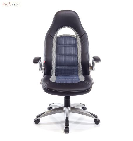 - Современный дизайн кресла дополнен удачным сочетанием обивочных материалов - ткань гармонично дополняет качественная экокожа чёрного цвета. Тканевые вставки помимо декоративной роли имеют и практичную функцию - они расположены в местах максимального соприкосновения с телом для ещё более комфортной посадки. Экокожа - качественный и практичный материал, по своим свойствам практически не уступает натуральной коже. Контрастные белые линии прошивки стильно выглядят на тёмной экокоже.
