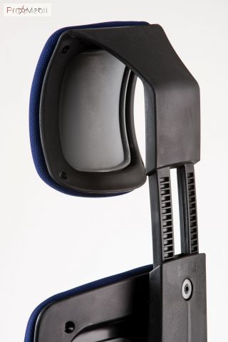 крісло керівника синього кольору має регульовану поперекову підтримку та анатомічну посадку |