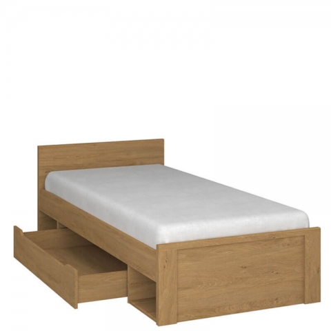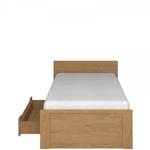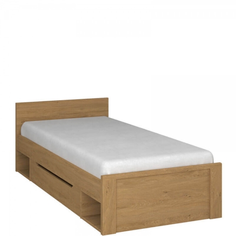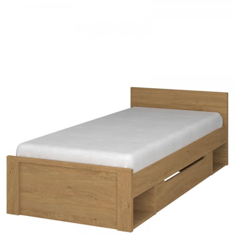 Ліжко 1S/90 Паві ВМВ, яке зачарує любителів природної елегантності та універсальності, створивши витончене оточення у спальні та молодіжній кімнаті. Функціональне та практичне ліжко створить комфортну зону для сну, а практичне узголів'я значно підвищить зручність використання меблів, а для речей, іграшок і книг в даній моделі передбачена зручна і містка шухляда, і відкриті ніші. Ліжко комплектується дерев'яними ортопедичними ламелями. Матрац купується окремо. Спальне місце становить 90х200 см, що забезпечує зручний і комфортний сон. Меблі привертають увагу унікальним стилем; привабливим теплим відтінком «дуб кам'яний» із чіткою дерев'яною текстурою; простотою геометричних форм; потовщеними масивними боковинами; фірмовими комплектуючими. Pavi VMV чудовий вибір для людей, які хочуть створити затишну та стильну атмосферу у своєму будинку.