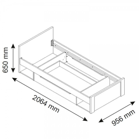 ліжко містить одну висувну шухляду для розміщення постільної білизни і відкриті ніші |