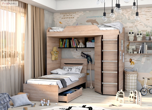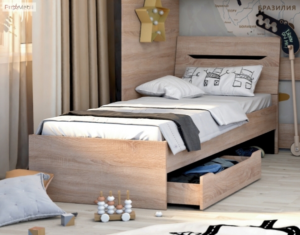 Функціональна дитяче ліжко 850 Аякс Майстер Форм - необхідний і чудовий елемент спального гарнітура, який гармонійно впишеться в інтер'єр. Ваша кімната стане ще більш практичною, затишною, гарною і стильною. Ліжко має узголів'я, що надає ліжку вишуканості і неординарності. В якості міцної і надійної підстави під матрац задіяне суцільне ДСП. Матрац купується окремо. Також Ви можете додатково укомплектувати ліжко висувними шухлядами. Спальне місце становить 80х200 см, що забезпечує зручний і комфортний сон. Корпус і фасадні частини виготовлені з якісного ламінованого ДСП, в безпрограшному поєднанні світлих і темних відтінків: дуб молочний або дуб сонома з венге магія. Торцеві поверхні всіх внутрішніх і зовнішніх елементів виробів облицьовані пластиковою кромкою, надаючи меблям завершений гарний і доглянутий вигляд. Меблі Аякс Майстер Форм привертають увагу своїм легким і сучасним дизайном; простими прямокутними формами; застосуванням двокольорової гами; фірмовими комплектуючими, які забезпечують максимальний комфорт у використанні. Меблі Аякс Майстер Форм чудово прикрасять інтер'єр Вашого будинку і дозволять підкреслити Вашу індивідуальність.