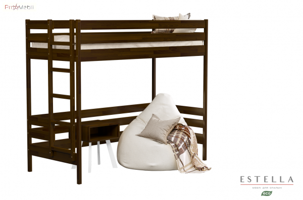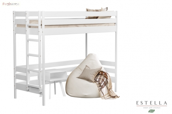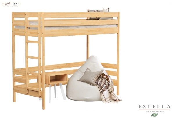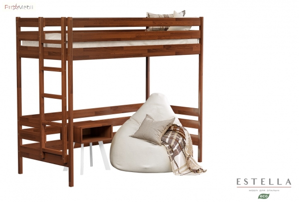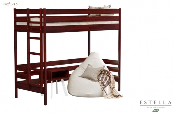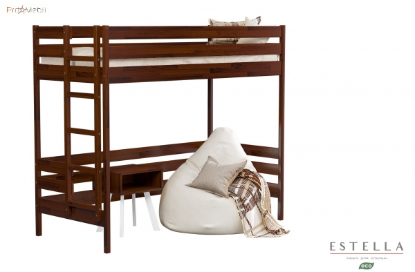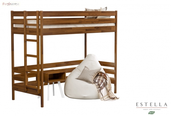 Ліжко-горище Лаос Естелла ідеальне рішення для економії простору. Класичне ліжко-горище є багатофункціональним, поєднує в собі ліжко та незаповнений нижній ярус, який Ви можете заповнити на свій розсуд, наприклад, доповнити ліжком, письмовим столом, або влаштувати ігрову зону для малюків. Виконана із натурального дерева щита або масиву бука на вибір. Випускається у 8 відтінках, кожен із яких ідеально впишеться в інтер'єр дитячої. Головними особливостями моделі є легкий та сучасний дизайн; прості прямокутні форми, суттєва економія корисного простору, ортопедична основа та можливість укомплектувати планкою безпеки. Ліжко комплектується міцними гнутими ламелями з ламінованої фанери завтовшки 8 мм. Завдяки особливій вигнутій формі, ламелі забезпечують додатковий ортопедичний ефект та комфорт. Спальне місце під матрац розміром 90х200 см забезпечить комфортний сон для однієї дитини або дорослого.