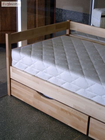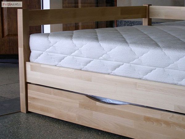 Кровать может быть изготовлена из букового щита или массива. К выбору доступно 8 цветовых решений включая белый цвет. Так же есть возможность выбора расстояния между ламелями: 4 см и 2,5 см.
