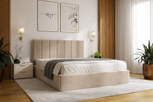 М'яке ліжко Рафаель Люкс Арбор Древ - модель, у якій відчувається баланс між строгою формою та м'яким тактильним сприйняттям, що створює спокійний, виважений простір для відпочинку, де кожна лінія виглядає логічно та довершено, втілена українською фабрикою «Арбор Древ». М'яке ліжко Рафаель Люкс Арбор Древ органічно вписується в інтер'єр, формуючи відчуття порядку та затишку без зайвих деталей. Конструкція виконана з натурального дерева (щит сосни) у поєднанні з МДФ, що гарантує міцність і стабільність конструкції. Основа та узголів'я м'яко обтягнуті шарами поролону та флізеліну, завдяки чому поверхня зберігає акуратний зовнішній вигляд і приємна на дотик. Вертикальна прострочка узголів'я додає інтер'єру ритм і глибину, а плавні форми основи пом'якшують загальний силует, роблячи його більш затишним. Ліжко комплектується міцними гнутими ламелями товщиною 5,3 мм з відстанню між ними 4,5 см, забезпечуючи правильну підтримку матраца та комфорт під час сну. Спальне місце під матрац 180х200 см підходить як для однієї людини, так і для пари, створюючи зручний простір для повноцінного відпочинку. Матрац купується окремо.