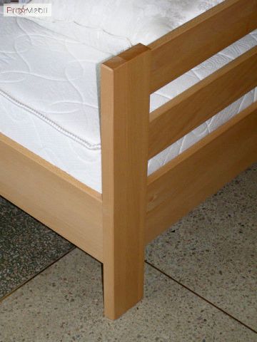 Кровать может быть изготовлена из букового щита или массива. К выбору доступно 8 цветовых решений включая белый цвет. Так же есть возможность выбора расстояния между ламелями: 4 см и 2,5 см.