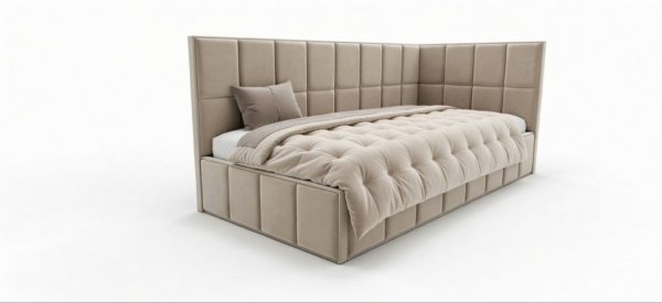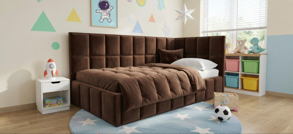 М'яке ліжко Емілі Арбор Древ - дитяче ліжко з виразною м'якою геометрією, де високі бічні спинки та ритмічні панелі створюють відчуття захищеного простору, наповнюючи кімнату теплом, спокоєм і візуальним затишком, у якому дитині легко відпочивати, гратися та засинати без зайвого напруження. Конструкція виконана з натурального дерева (щит сосни) у поєднанні з МДФ, що надає ліжку міцність, стійкість і надійність у щоденному використанні, зберігаючи форму та охайний зовнішній вигляд протягом тривалого часу. Основа, узголів'я та бічні панелі м'яко обтягнуті шарами поролону та флізеліну, формуючи об'ємну, приємну на дотик поверхню з чіткою вертикальною прострочкою, яка додає візуального ритму та робить дизайн більш виразним і сучасним. Продумані бічні спинки та комфортна висота посадки створюють відчуття затишку та захищеності, а також роблять ліжко зручним для дитини, дозволяючи легко сідати, вставати та використовувати його у повсякденному житті без зайвих зусиль. Ліжко комплектується міцними гнутими ламелями товщиною 5,3 мм з відстанню між ними 4,5 см, що забезпечує правильну підтримку матраца та сприяє комфортному й спокійному сну. Спальне місце розміром 80x190 см оптимально підходить для дитини, створюючи достатньо простору для відпочинку та сну. Матрац купується окремо. Емілі Арбор Древ - м'який, гармонійний простір, де кожна деталь працює на відчуття затишку та спокою.