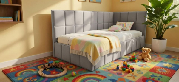 М'яке ліжко Емілі Арбор Древ - дитяче ліжко з виразною м'якою геометрією, де високі бічні спинки та ритмічні панелі створюють відчуття захищеного простору, наповнюючи кімнату теплом, спокоєм і візуальним затишком, у якому дитині легко відпочивати, гратися та засинати без зайвого напруження. Конструкція виконана з натурального дерева (щит сосни) у поєднанні з МДФ, що надає ліжку міцність, стійкість і надійність у щоденному використанні, зберігаючи форму та охайний зовнішній вигляд протягом тривалого часу. Основа, узголів'я та бічні панелі м'яко обтягнуті шарами поролону та флізеліну, формуючи об'ємну, приємну на дотик поверхню з чіткою вертикальною прострочкою, яка додає візуального ритму та робить дизайн більш виразним і сучасним. Продумані бічні спинки та комфортна висота посадки створюють відчуття затишку та захищеності, а також роблять ліжко зручним для дитини, дозволяючи легко сідати, вставати та використовувати його у повсякденному житті без зайвих зусиль. Ліжко комплектується міцними гнутими ламелями товщиною 5,3 мм з відстанню між ними 4,5 см, що забезпечує правильну підтримку матраца та сприяє комфортному й спокійному сну. Спальне місце розміром 90x200 см оптимально підходить для дитини, створюючи достатньо простору для відпочинку та сну. Матрац купується окремо. Емілі Арбор Древ - м'який, гармонійний простір, де кожна деталь працює на відчуття затишку та спокою.