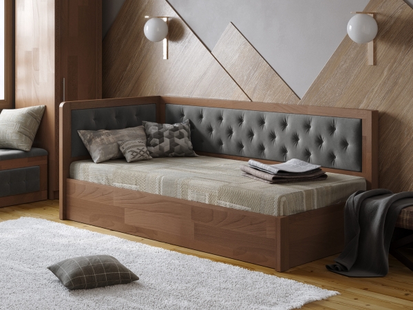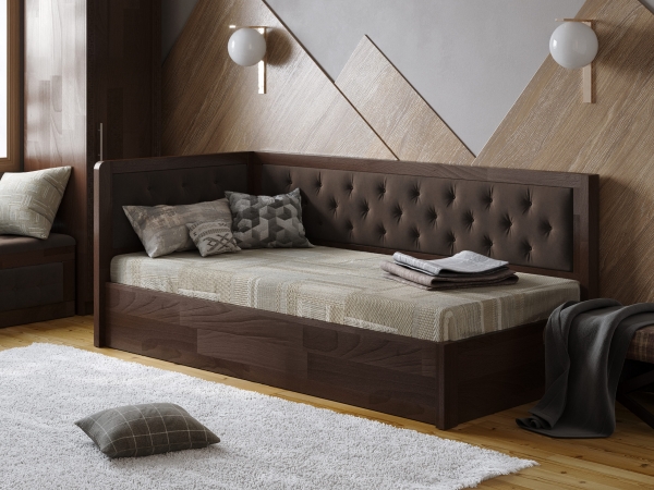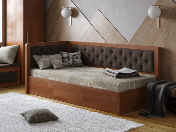 Дерев'яне ліжко - тахта Немо Люкс М2 Arbor Drev - з натурального дерева найвищого гатунку, виготовлене українською фабрикою Арбор Древ. Ліжко Nemo Lyuks M2 Arbor Drev - це комфортні меблі, які виступають не тільки як дивани, але і як ліжко. Вдень воно забезпечує відмінне місце для відпочинку, а ввечері надає можливість поринути в обійми Морфея. Ліжко виконане з натурального дерева бука або сосни на вибір, і покрито гіпоалергенним лаком італійського виробництва. Немо Люкс М2 Арбор Древ характеризується універсальний дизайн; елегантною м'якою задньою спинкою, що відокремлює спальне місце ліжка від стіни; високим м'яким узголів'ям, яке надає неймовірний комфорт; об'ємними та фактурними стильними втяжками; міцним і надійним підйомним механізмом, який забезпечить вам легкий доступ до місткої ніші, яка дозволить зберігати в ній постільну білизну, дитячі іграшки та багато інших потрібних речей. Ліжко комплектується міцними гнутими ламелями товщиною 5,3 мм та відстанню між ними 3 см. Спальне місце під матрац у розмірі 90х200 см забезпечить комфортний сон для дорослого або дитини. Матрац купується окремо.