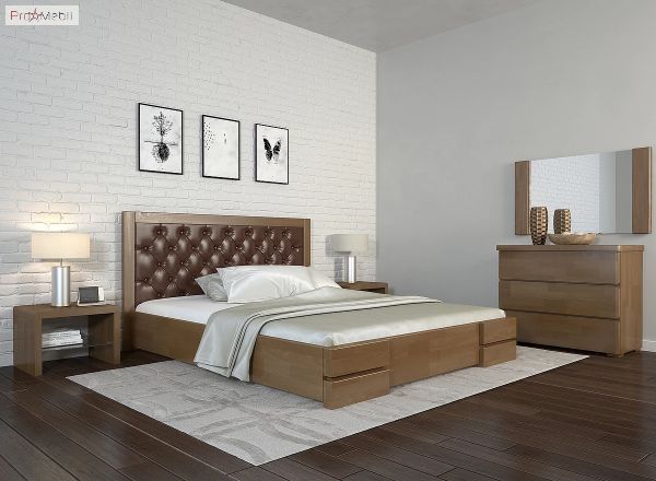 Дерев'яне ліжко Регіна Люкс Arbor Drev - з натурального дерева найвищого гатунку, виготовлене українською фабрикою Арбор Древ. Ліжко Regina Lux Arbor Drev - стильне, граційне з вишуканим європейським сучасним стилем, який ідеально підкреслить інтер'єр спальної кімнати. Ліжко виконане з натурального дерева бука або сосни на вибір, і покрита гіпоалергенним лаком італійського виробництва. Регіна Люкс Арбор Древ характеризується правильними геометричними формами, високим м'яким узголів'ям, яке надасть неймовірного комфорту при читанні книги, перегляду фільму або роботі за ноутбуком; підйомним механізмом на вибір: розбірним металевим каркасом або стандартним фанерним з коробом для зберігання речей; масивним підніжжям з прямокутними накладками; квадратними ніжками. Ліжко комплектується міцними гнутими ламелями товщиною 5,3 мм та відстанню між ними 4,5 см. Спальне місце під матрац у розмірі 160х200 см забезпечить комфортний сон для дорослого або дитини. Матрац купується окремо.