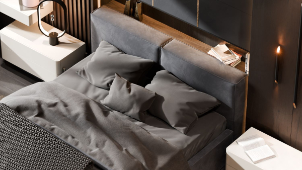 м’яке ліжко оснащене підйомним механізмом та м’яким узголів’ям |