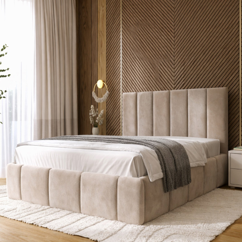 М'яке ліжко Верті Арбор Древ - виразне поєднання сучасної пластики та м'якої геометрії, створене для тих, хто цінує спокійну естетику, тактильний комфорт та атмосферу затишку, втілене українською фабрикою Арбор Древ з увагою до кожної деталі. М'яке ліжко Верті Арбор Древ наповнює простір відчуттям гармонії та усамітнення, м'яко формуючи зону відпочинку, де легко розслабитися та відновити сили. Конструкція виконана з натурального дерева (щит сосни) у поєднанні з МДФ, що забезпечує надійність та стабільність на довгі роки. Основа та узголів'я м'яко обтягнуті шарами поролону та флізеліну, завдяки чому поверхня виглядає акуратно та приємно відчувається у повсякденному використанні. Вертикальна прострочка узголів'я формує виразну геометрію, додаючи інтер'єру глибину та легку архітектурність, при цьому залишаючись візуально легкою. Ліжко доповнене зручним підйомним механізмом, під яким приховано місткий простір для зберігання постільних речей, що дозволяє підтримувати порядок без зайвих зусиль і звільняти простір спальні, а також комплектується міцними гнутими ламелями товщиною 5,3 мм з відстанню між ними 4,5 см, які забезпечують правильну підтримку матраца та комфорт під час сну. Спальне місце під матрац розміром 160х200 см підходить як для однієї людини, так і для пари, створюючи зручний простір для повноцінного відпочинку. Матрац купується окремо.