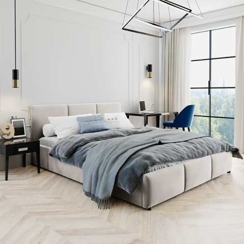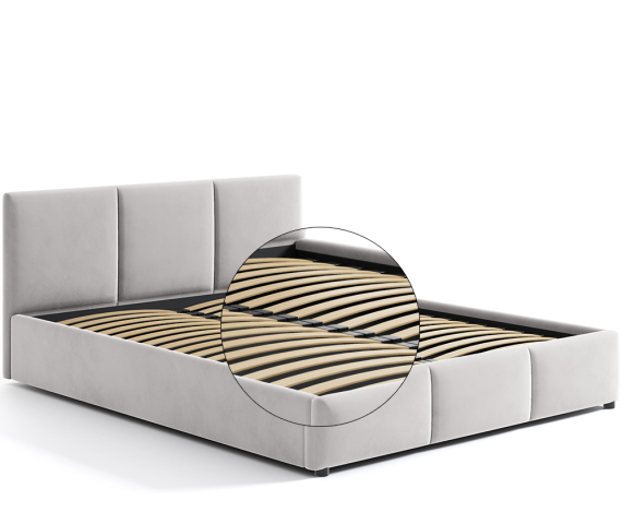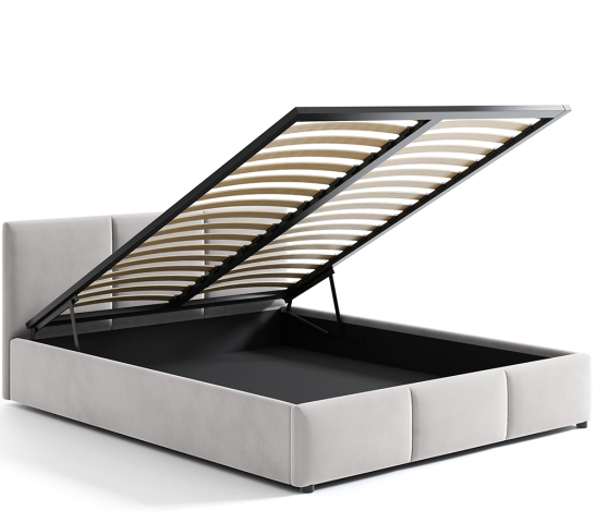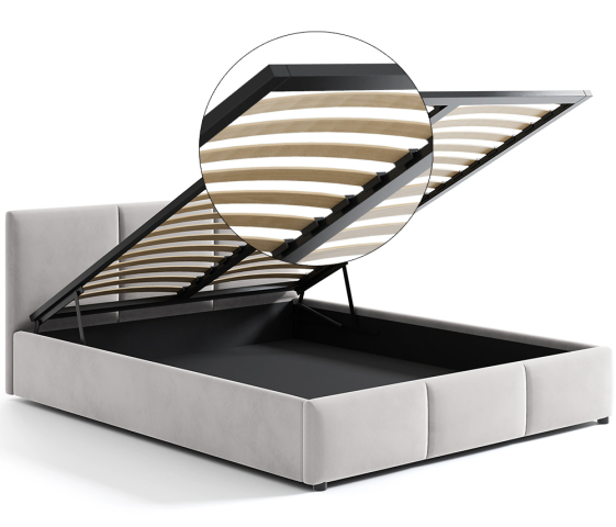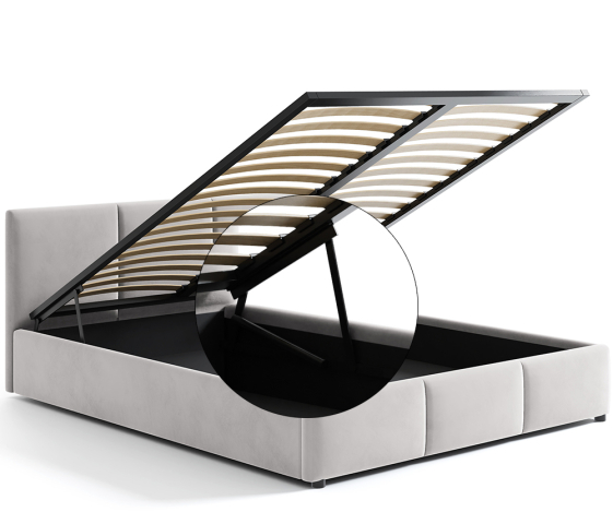 ліжко з м’яким узголів’ям оснащене підйомним механізмом з коробом для зберігання речей |
