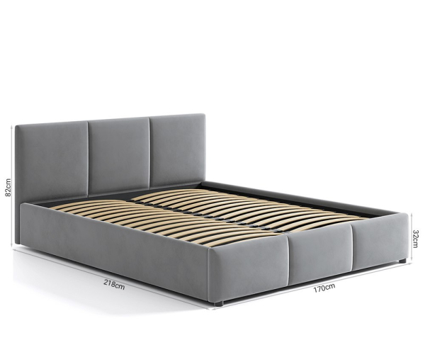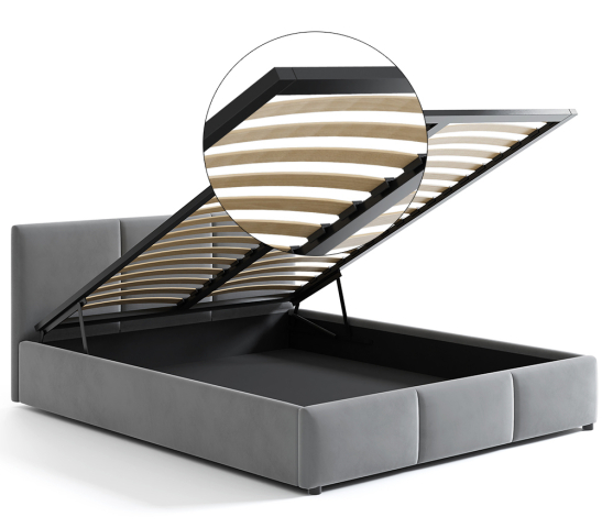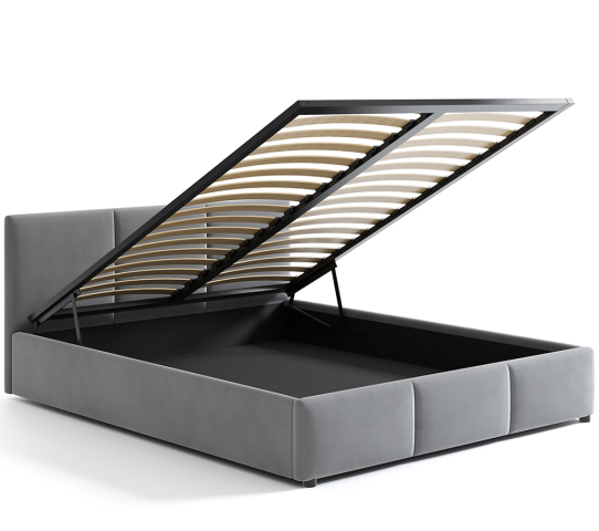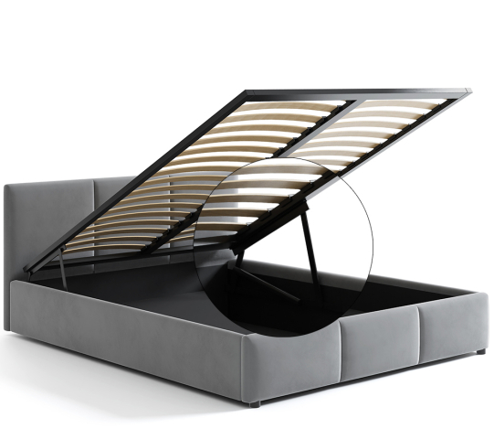 ліжко з м’яким узголів’ям оснащене підйомним механізмом з коробом для зберігання речей |