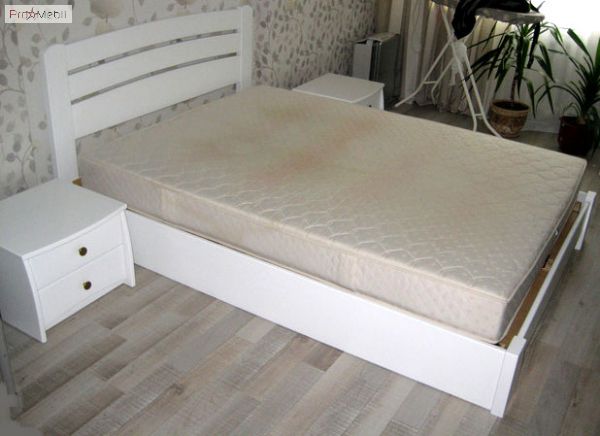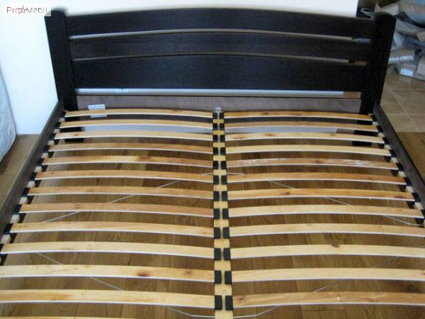 Кровать может быть изготовлена из букового щита или массива. К выбору доступно 8 цветовых решений включая белый цвет. Так же есть возможность выбора расстояния между ламелями: 4 см и 2,5 см.