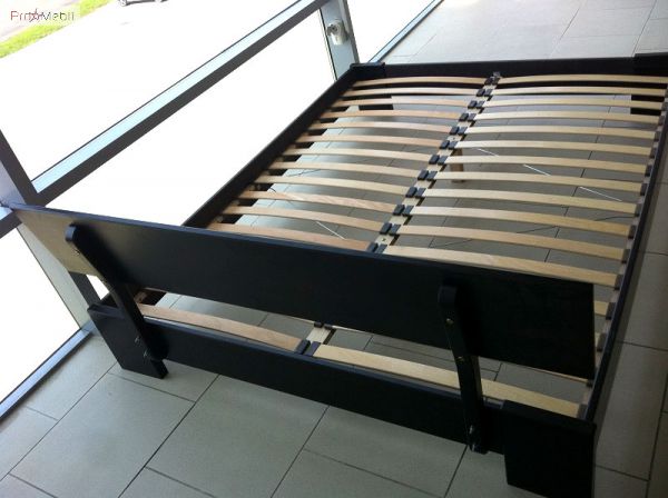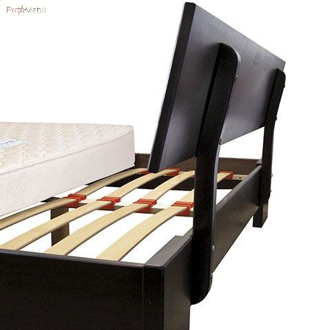 Кровать может быть изготовлена из букового щита или массива. К выбору доступно 8 цветовых решений включая белый цвет. Так же есть возможность выбора расстояния между ламелями: 4 см и 2,5 см.